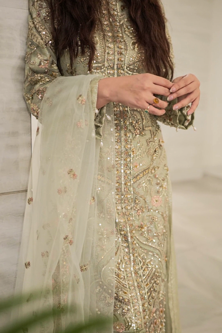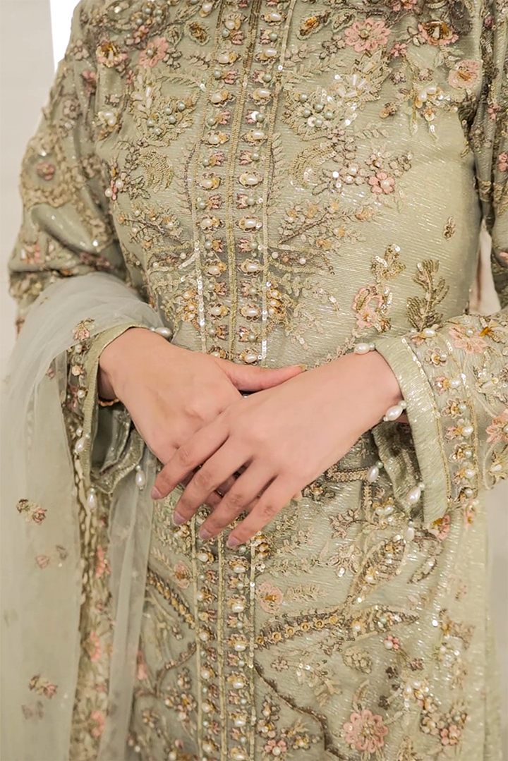 Shirt: Heavy Multi Embroidered Long Shirt with Pearl Embellishment