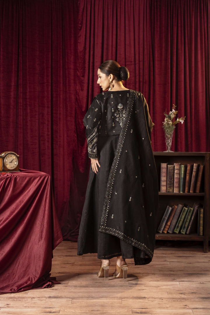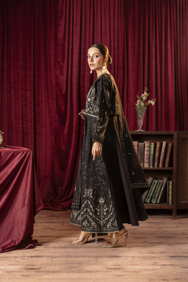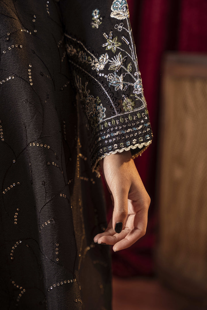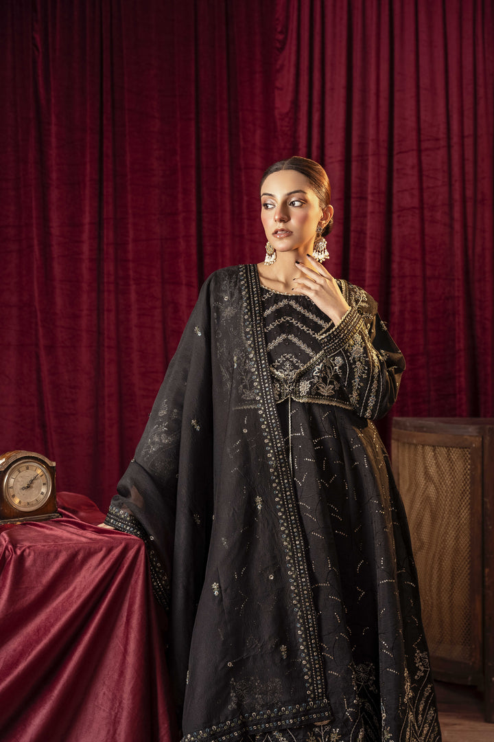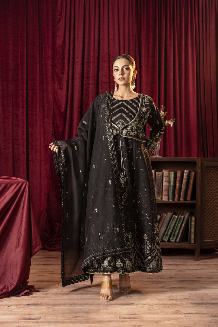 Make a bold statement with our Noir Elegance dress, designed in a classic black hue that exudes sophistication and timeless charm. Crafted from luxurious Khaadi Organza, this formal wear masterpiece features an ethereal flow and delicate details, making it the perfect choice for grand celebrations, evening soirées, and special occasions.